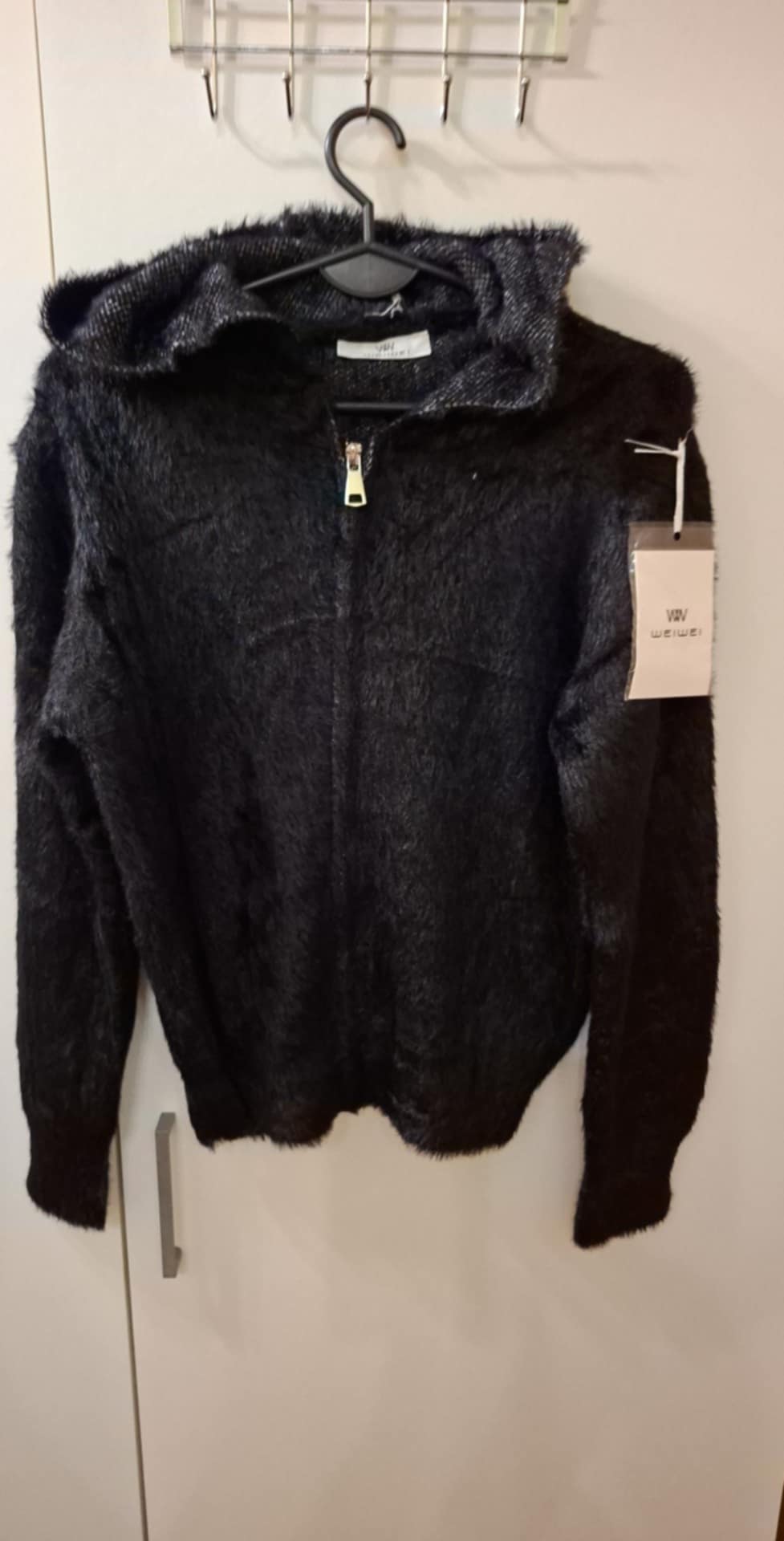 Sweter alpakowy ( 3 warstwowy) z kapturem, zapinany na zamek, ściągacz na rękawie i na dole , miękki , mięsisty, grubszy , 56% wiskoza, 30% poliester, 14% nylon .