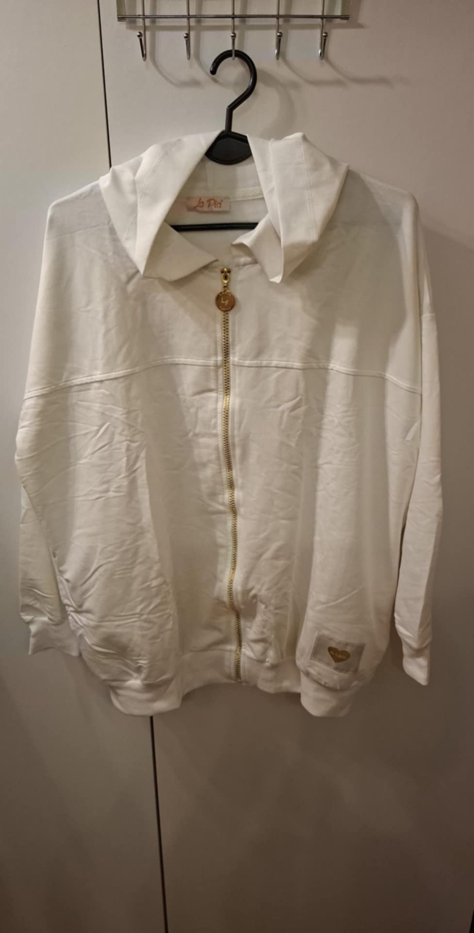 Bluza firmy LaPia w kolorze białym , po całości złoty zamek , z kapturem, dół bluzy i rękawy na ściągaczu. 95% bawełna , 5 %  elastan , Rozmiar UNI od S do XL