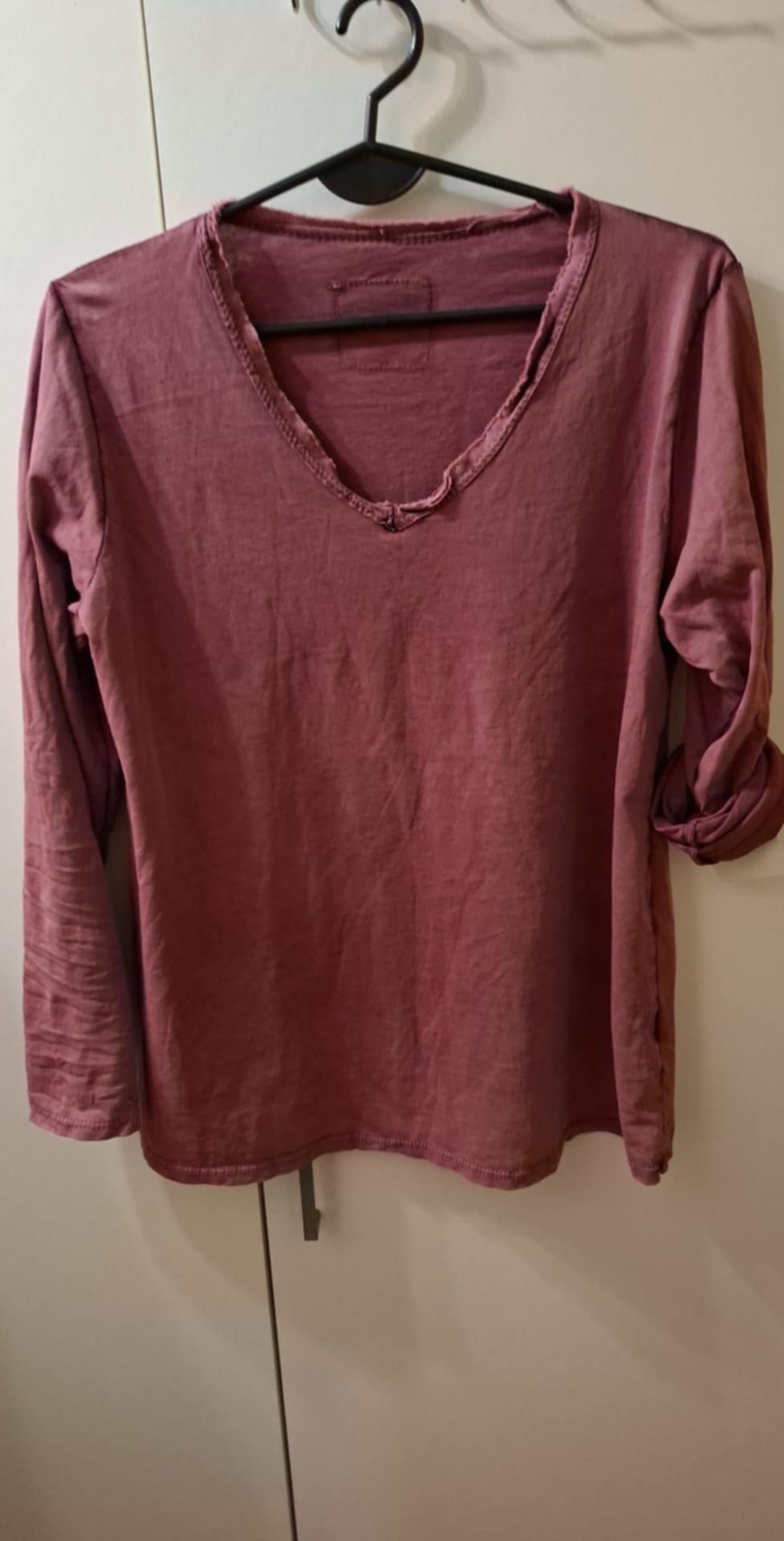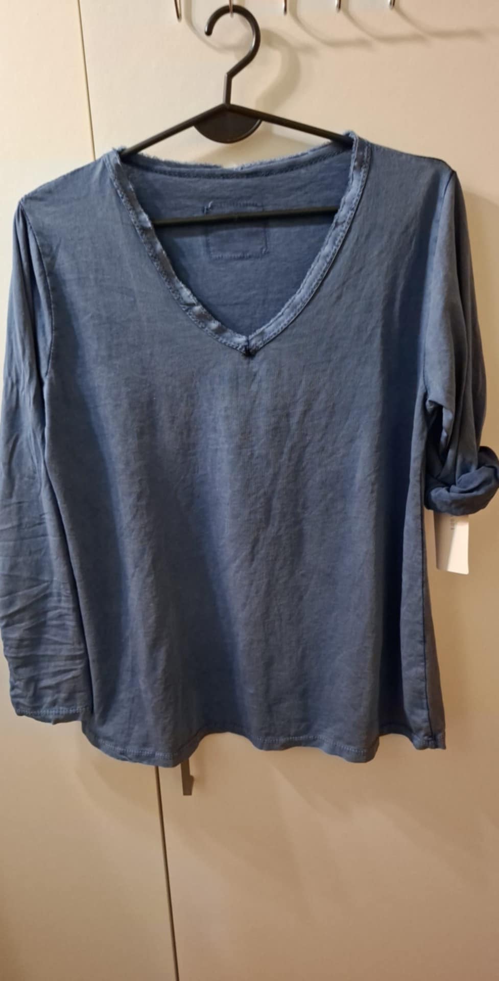 Bluzeczka z długim rękawem , możliwość podwinięcia , prosta, klasyczna. 100% bawełna .  Rozmiar : biust 74-90 cm , długość 60 cm .