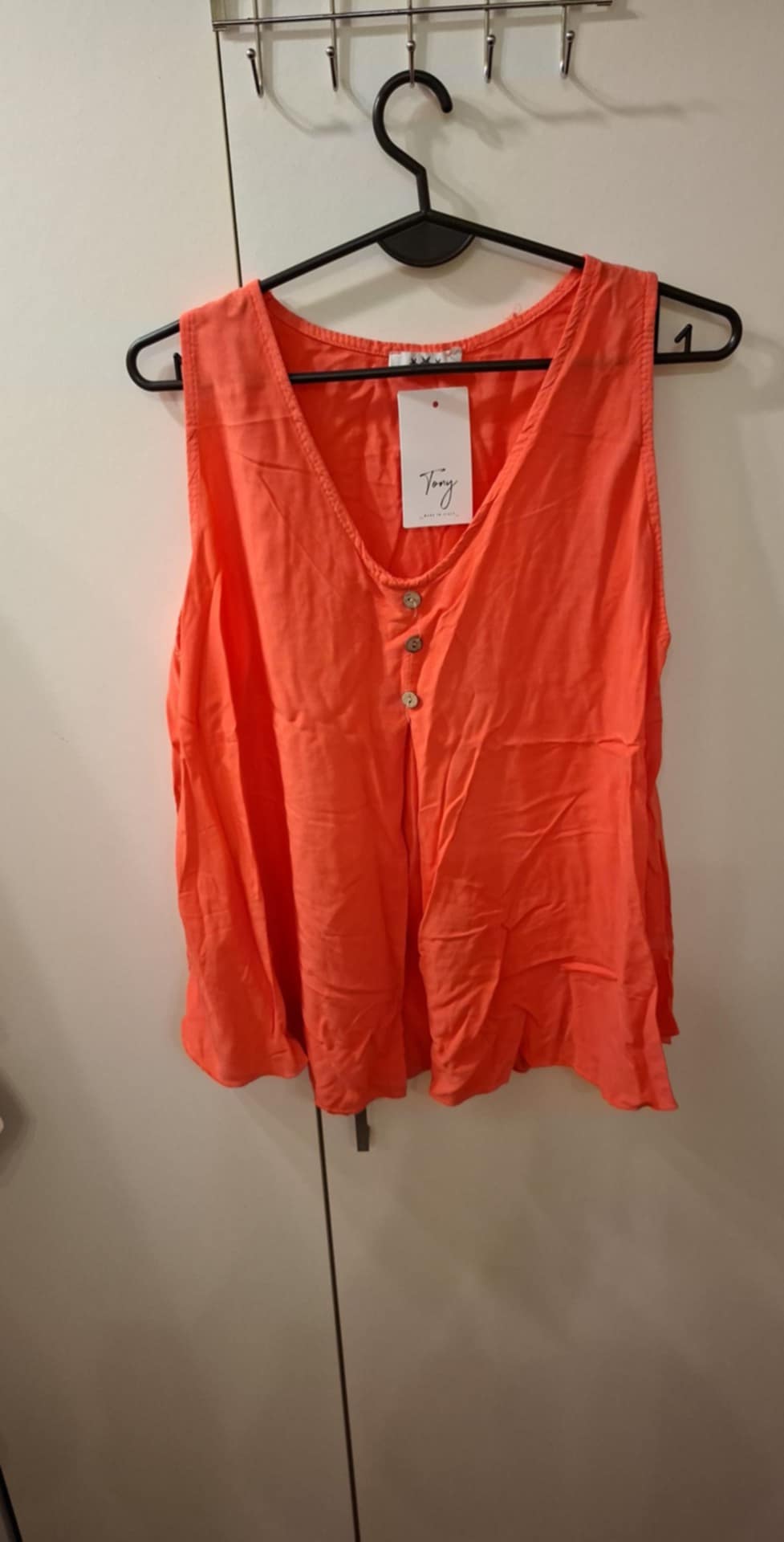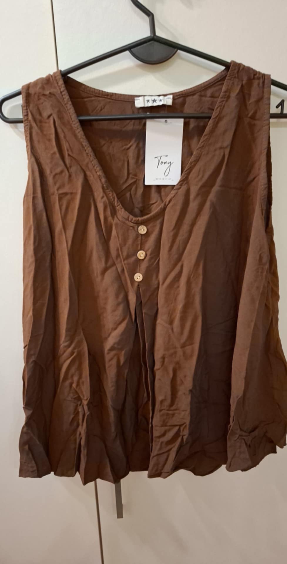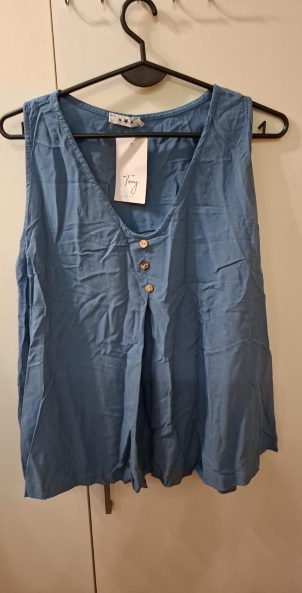 Bluzka 100% wiskoza, lekka, zwiewna , luźna , na środku przeszycie tworzące falbanę , dekoracyjne 3 guziczki . Rozmiar uniwersalny od M do 2XL