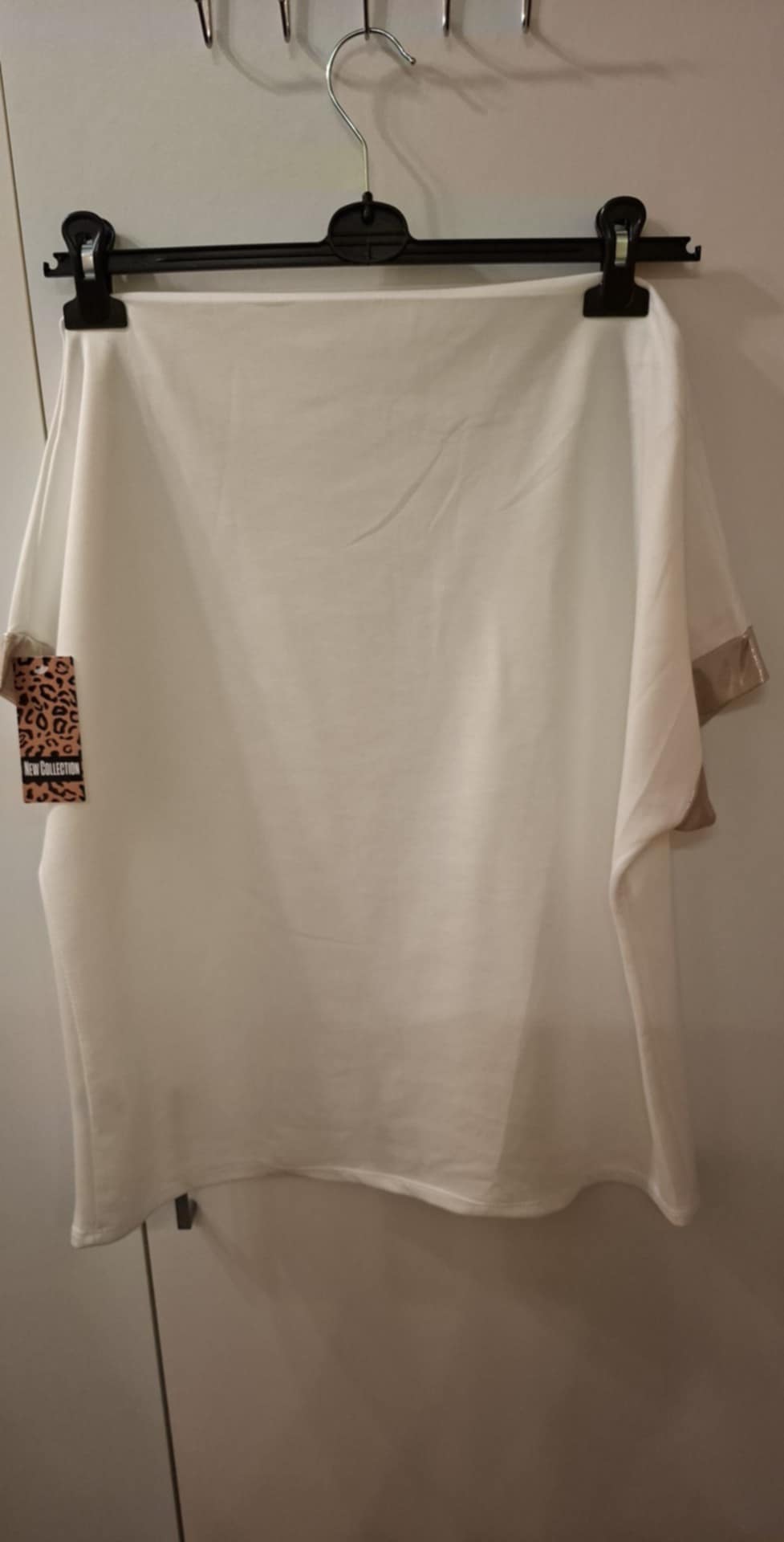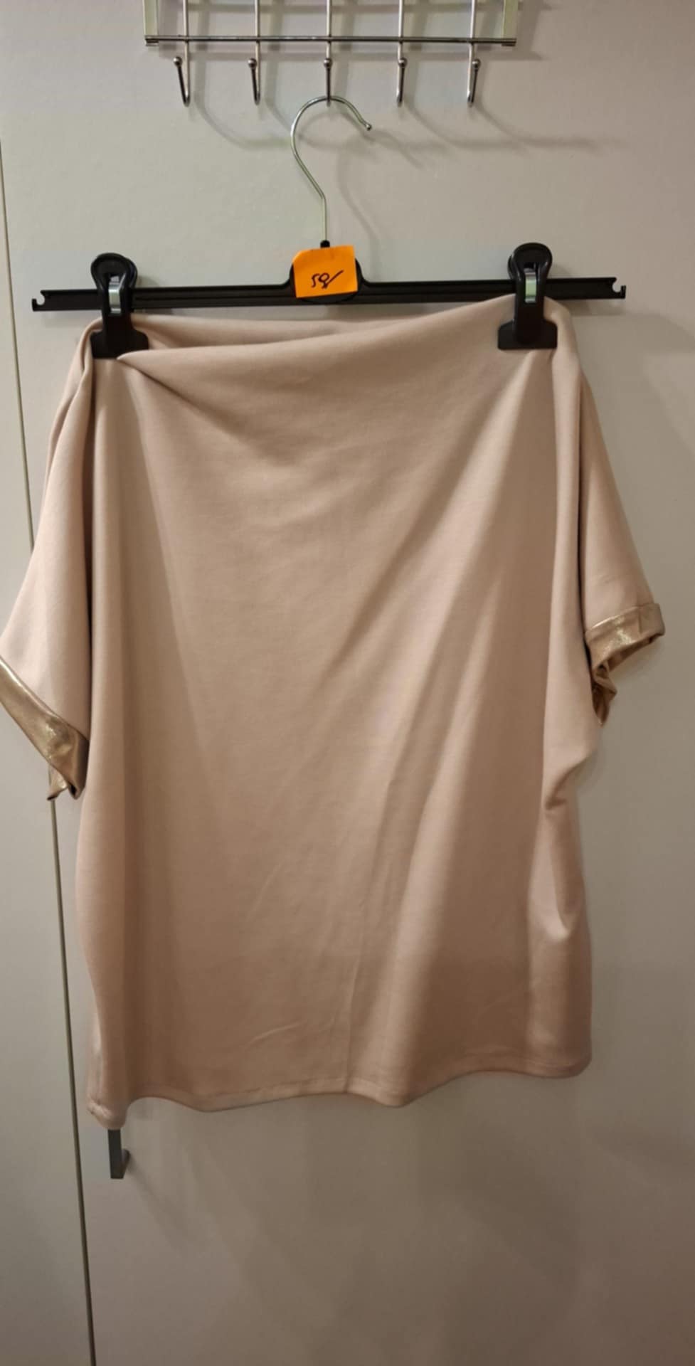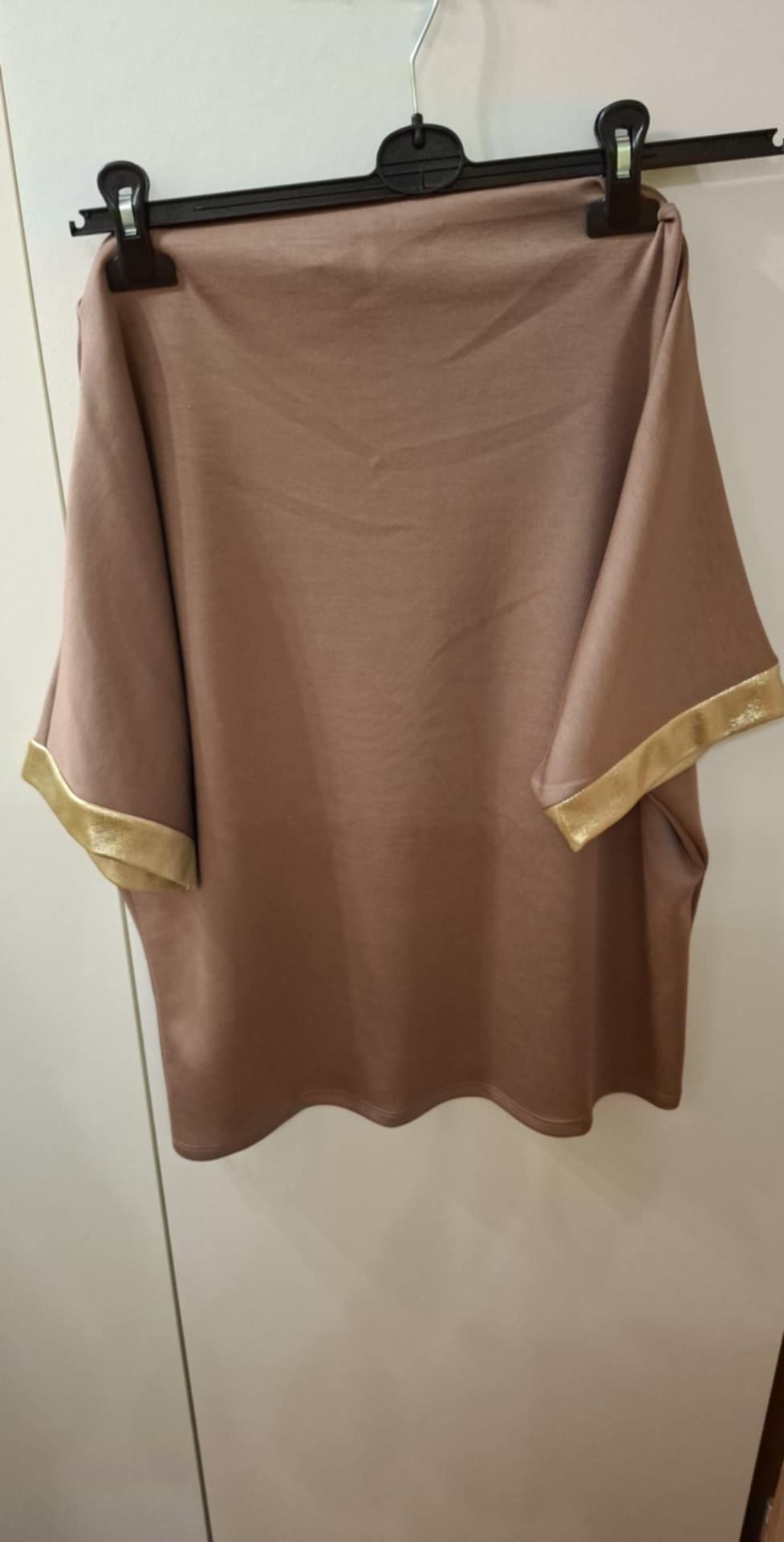 Bluzka z materiału masełko , złoty lampas na rękawie . 80% wiskoza, 40% elastan . Rozmiar : biust do 116 cm , długość 65 cm