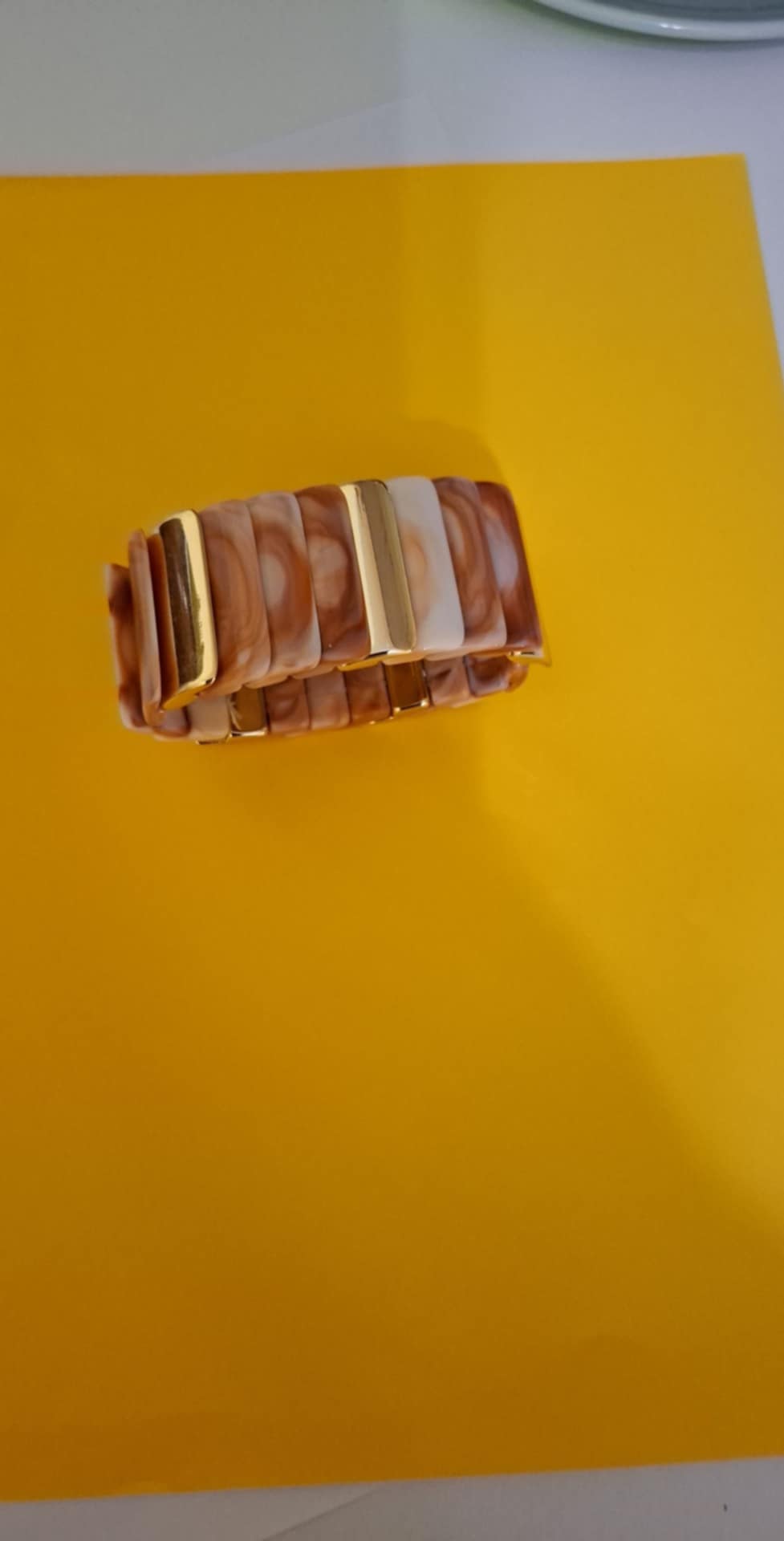 Bransoletka na rzemyku , w kształcie prostokącików w odcieniach kermel i złoto