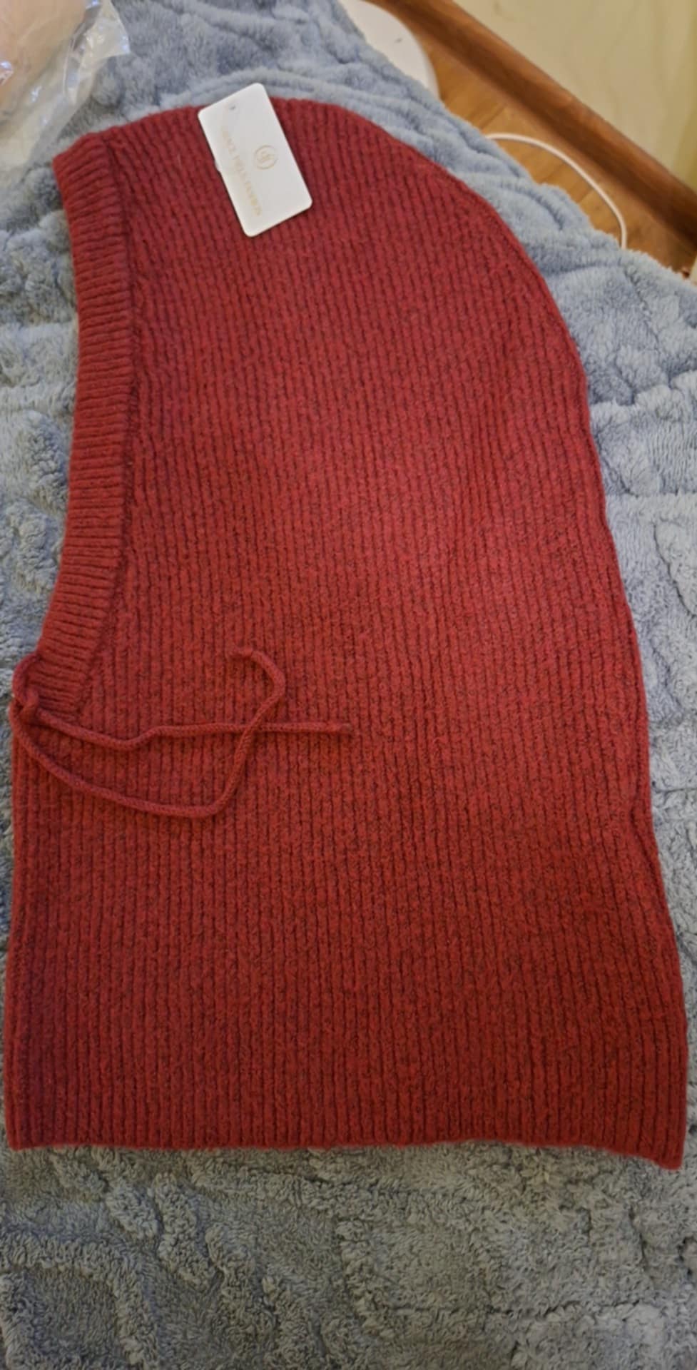 Czapka połączona z szalem , wiązany troczek , kolor bordowy