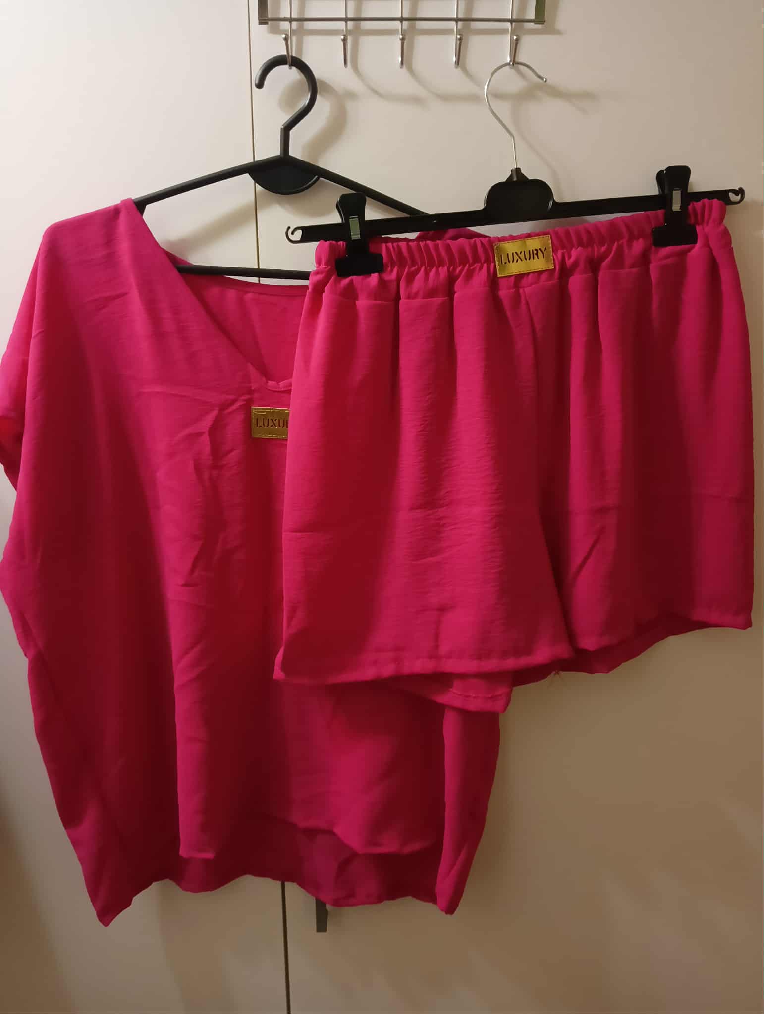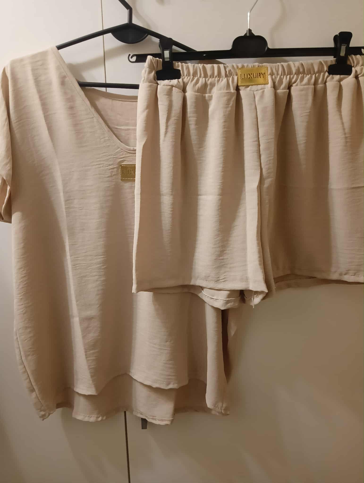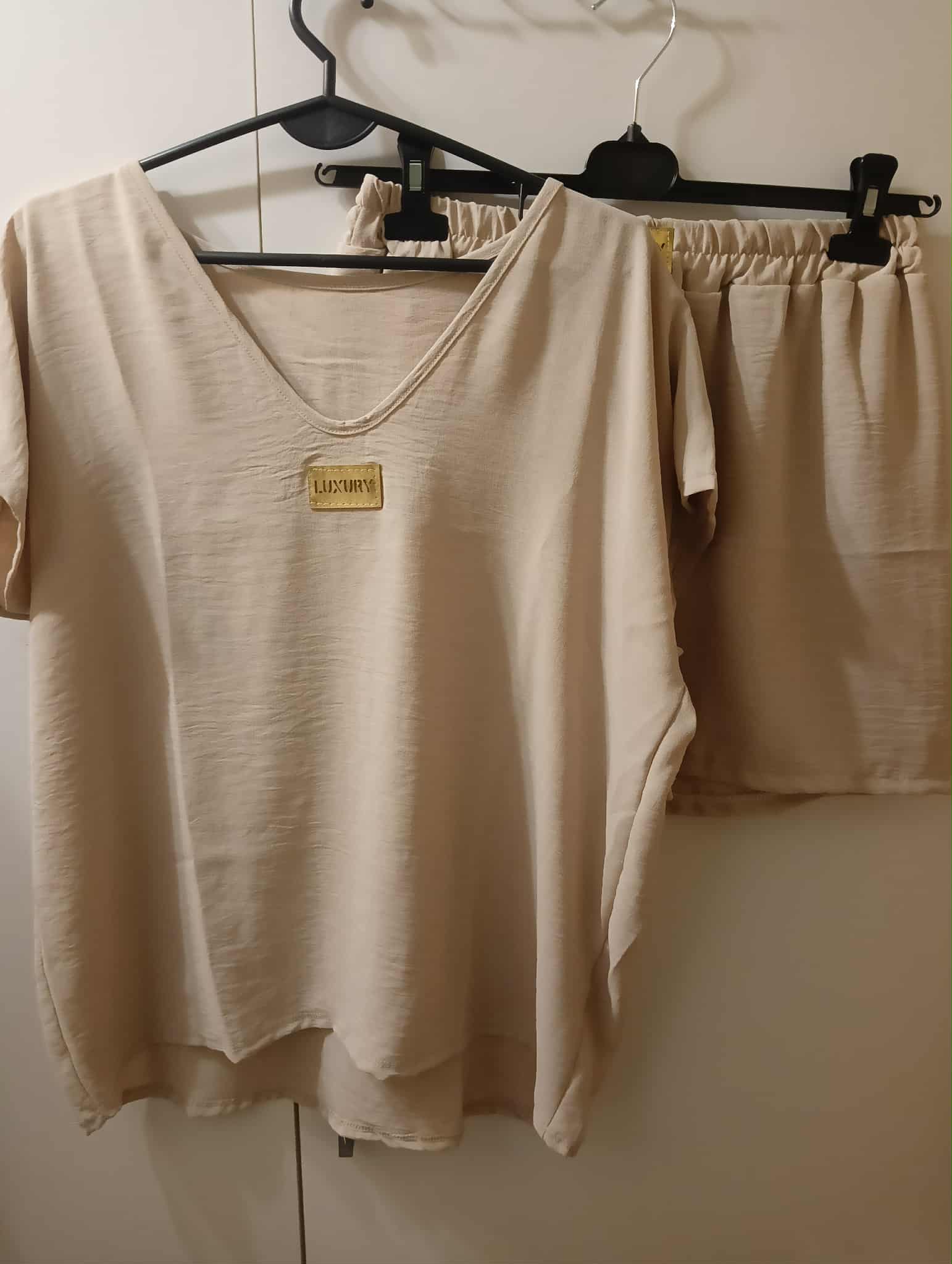 Komplet z krótkimi spodenkami , z napisem Luxury , 97% poliester, 3% elastan .
