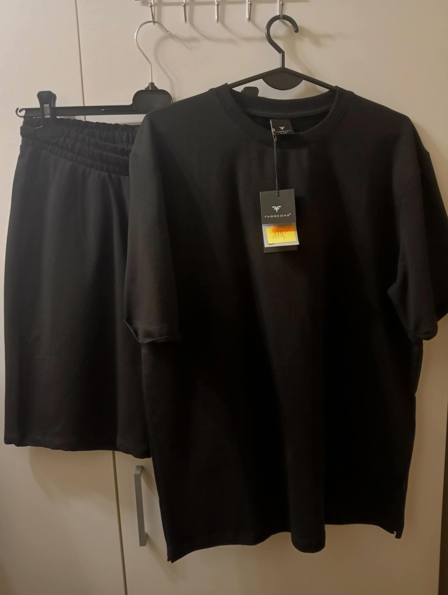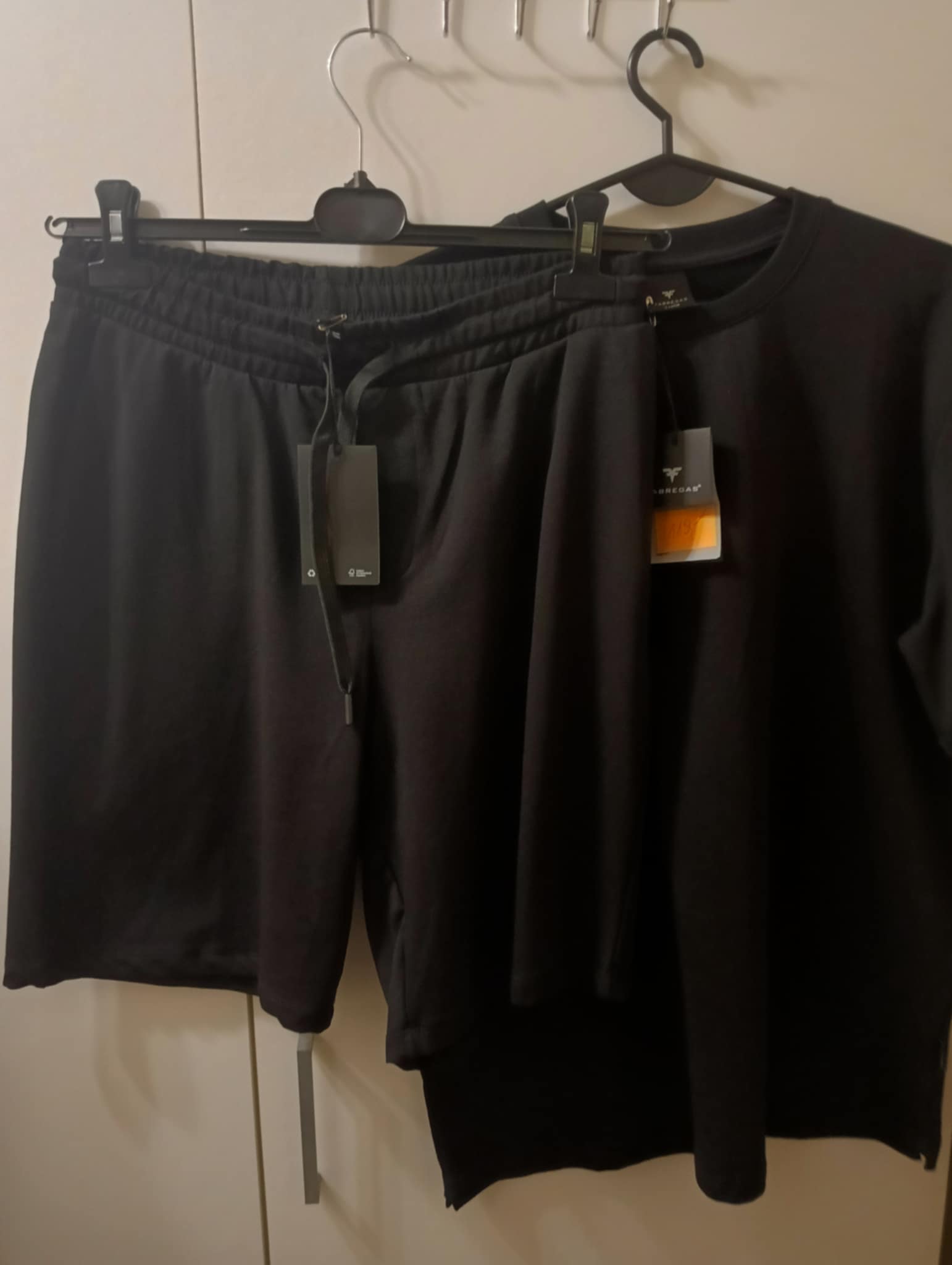 Komplet męski 95%bawełna , 5% lycra . Spodenki gładkie, wysokotaliowane z troczkiem, z tyłu kieszonka , bluzka gładka .  Rozmiar XL : bluzka -klatka 122 cm , długość 76 , spodenki – pas 76-98 cm , biodra 120-138 cm , długość 52-55 cm .