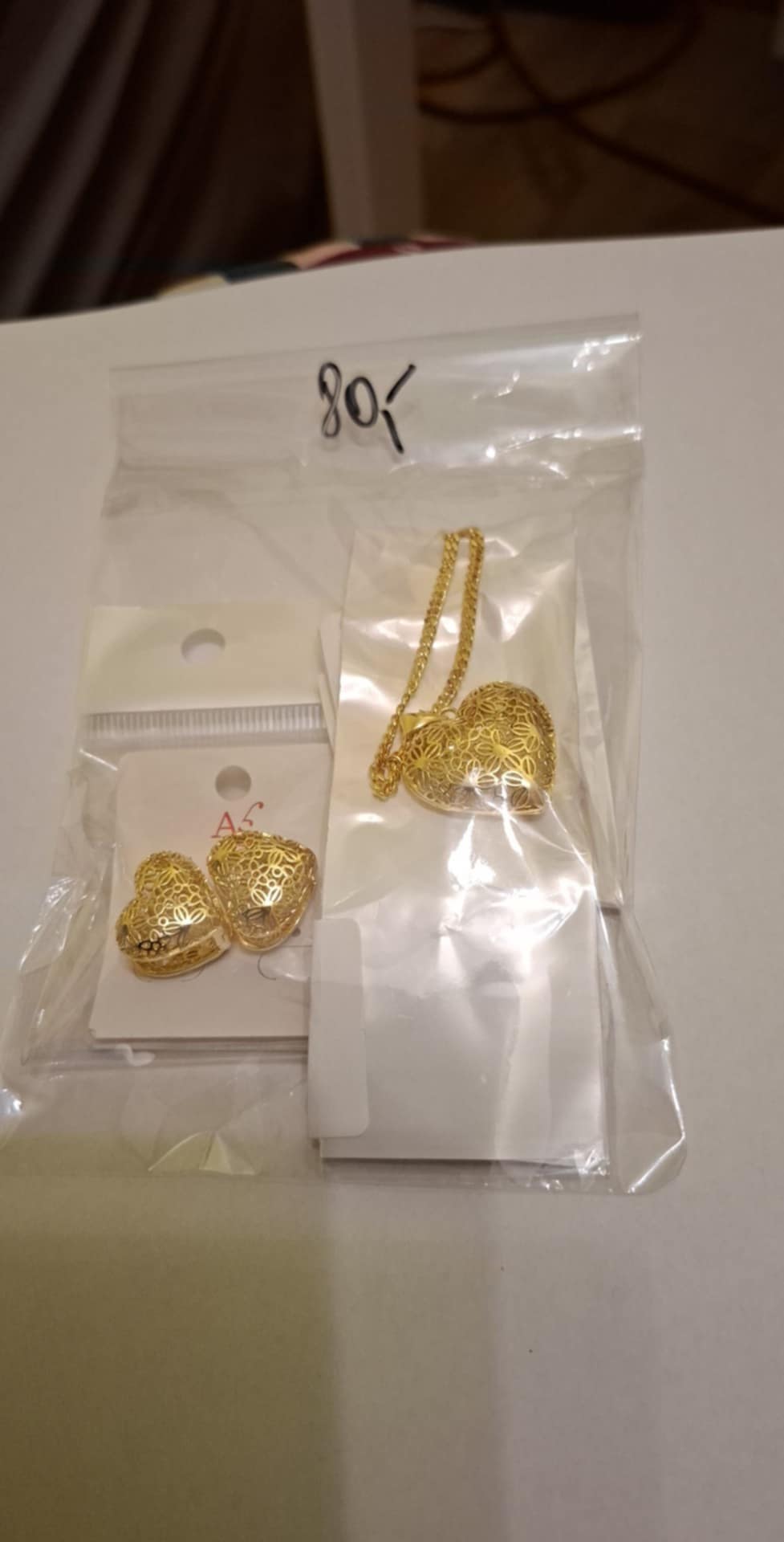 Biżuteria ze stali chirurgicznej nie uczula, nie czernieje. W komplecie łańcuszek z przywieszką pięknego serca , oraz kolczyki zapinane na klik .