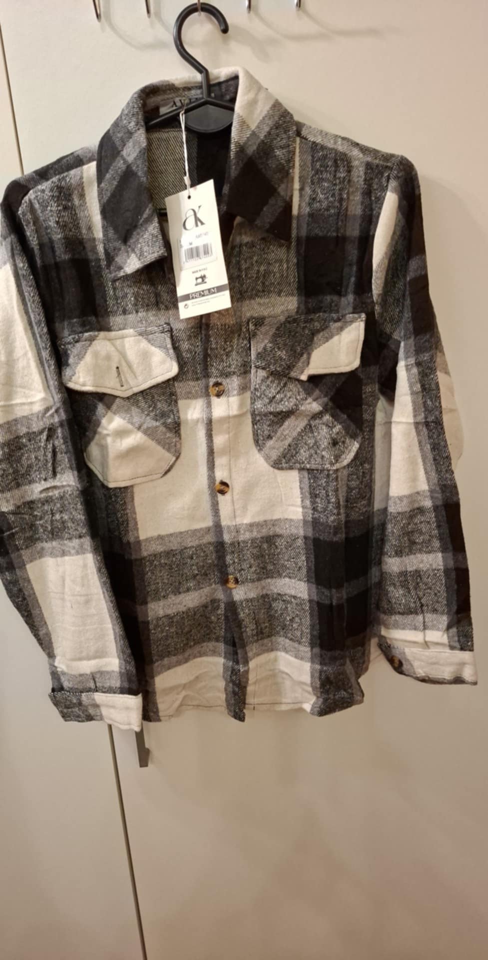 Koszula w kratę z długim rękawem, zapinana na guziki , zakończona kołnierzykiem , dwie kieszonki na guzik , tył dłuższy . 95% bawełna i 5% elastan . Rozmiary : M – biust 100, długość przód 57, a tył 64 , L – biust 104, długość 58 przód, tył 65
