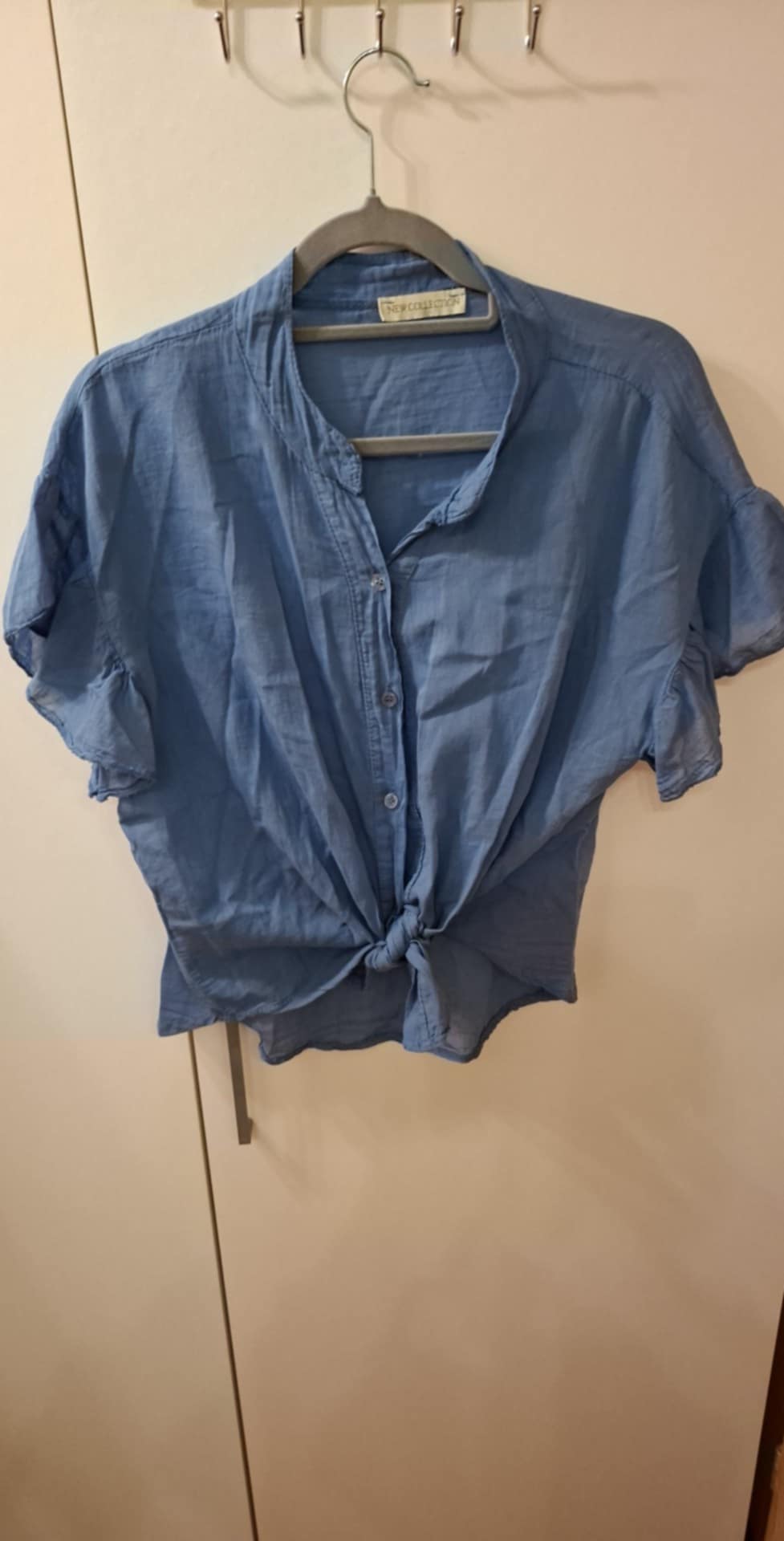 Koszulka/ bluzka 80% wiskoza + 20% nylon. Rękawek zakończony falbanką , można związać dołem, zapinana na guziki , na stójce . Rozmiar uniwersalny od S do L .