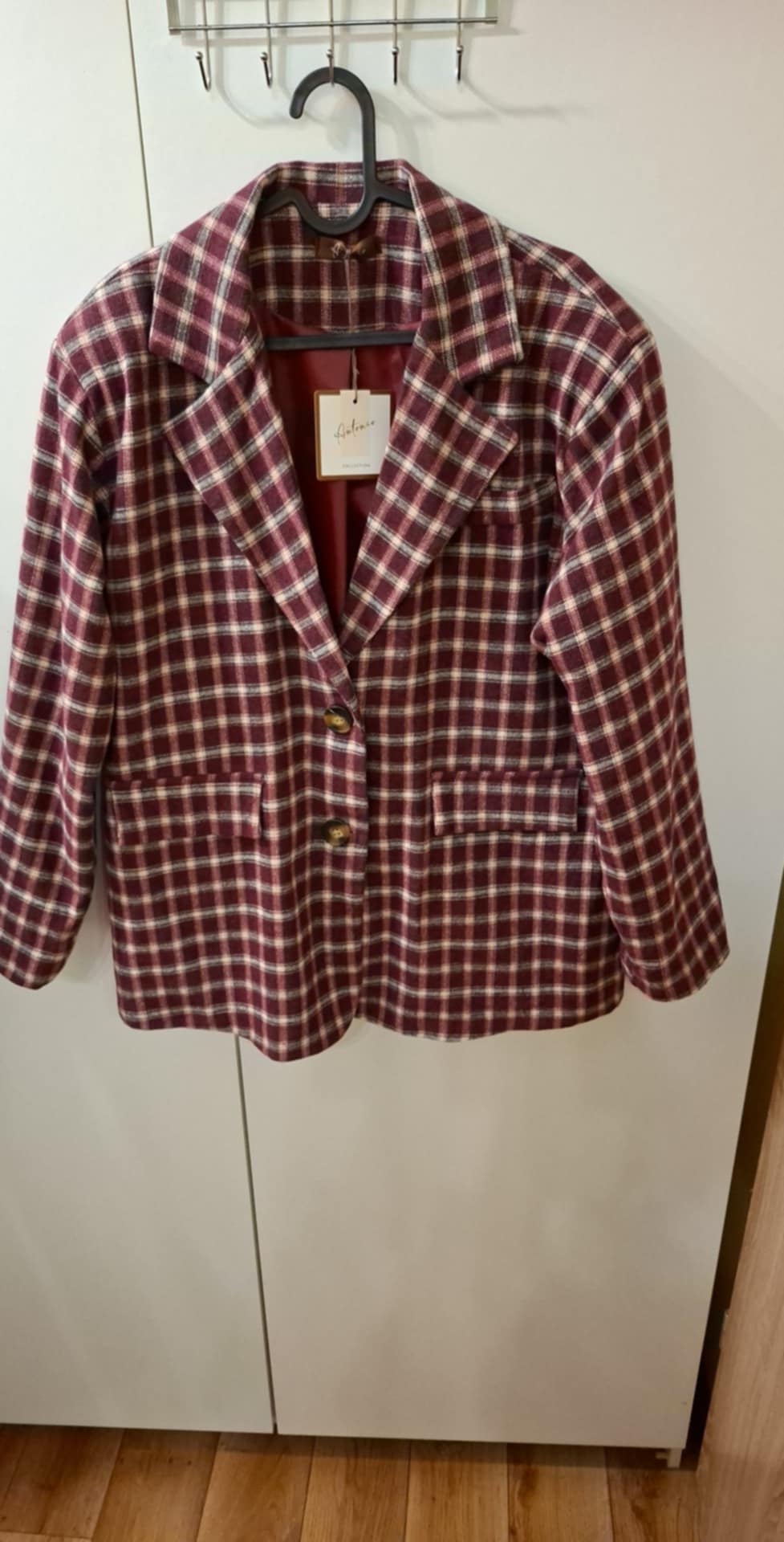 Marynarka w kartę , na podszewce, zapinana na dwa guziki . Rozmiar : biust do 114 cm , długość 70 cm ,     100% bawełna