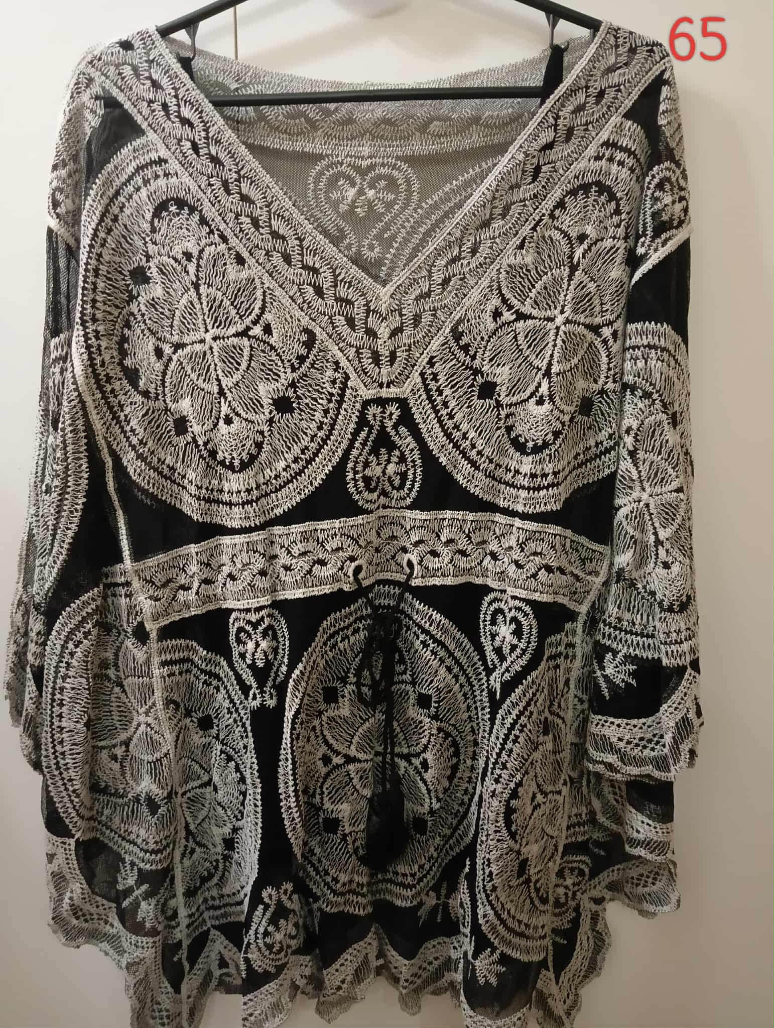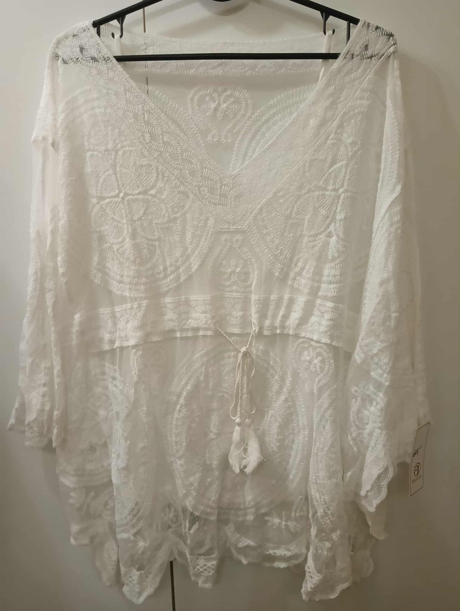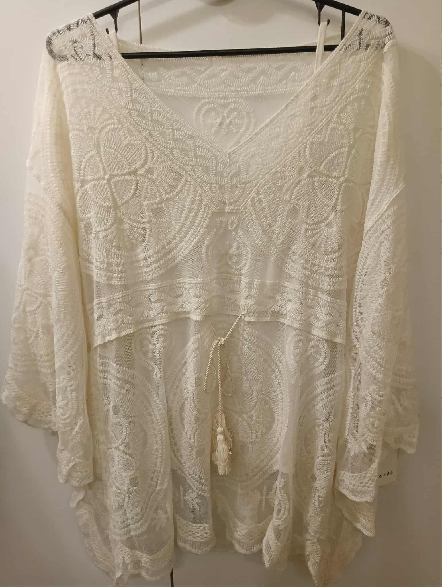Rozmiar (S – XL)  : topik – biust 90-107 cm , długość 56 cm , narzutka – biust do 120 cm , długość 75 cm