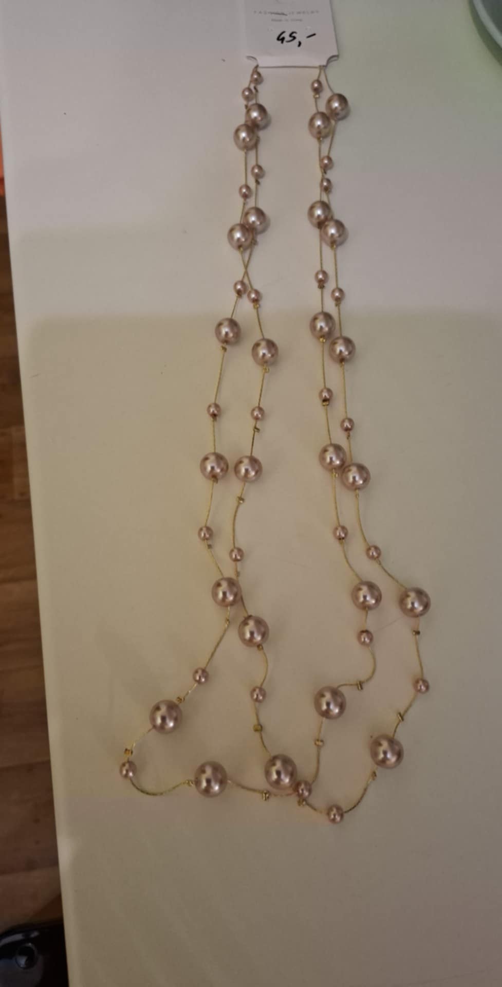 Naszyjnik z koralami na złotych sznureczkach . Długość pierwszego – 40cm , a drugiego 45 cm . Standardowe zapięcie