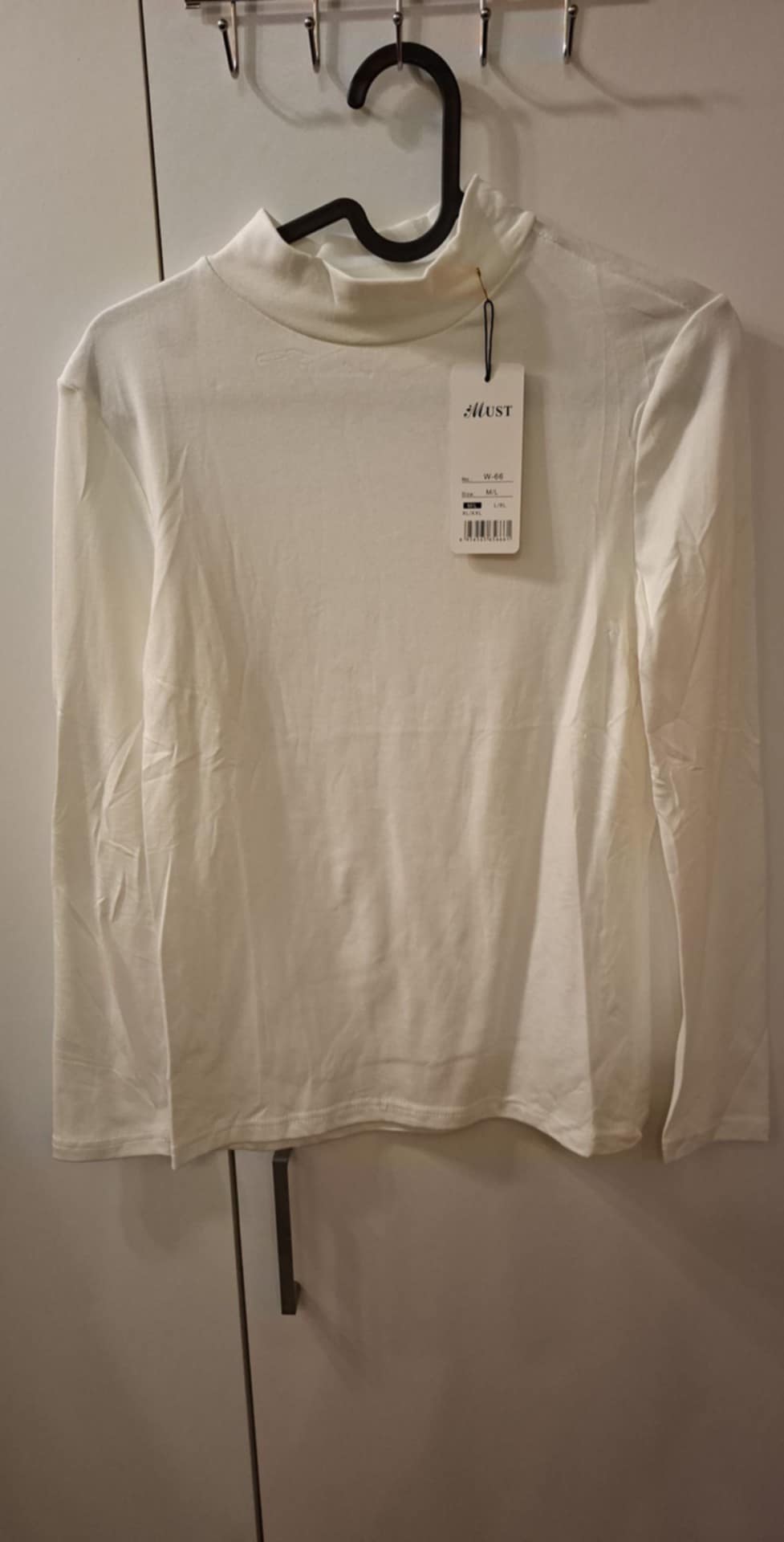 Półgolf biały , gładki, prosty na delikatnym puszku , 65% bawełna , 30% poliester, 5% elastan. Rozmiar M/L
