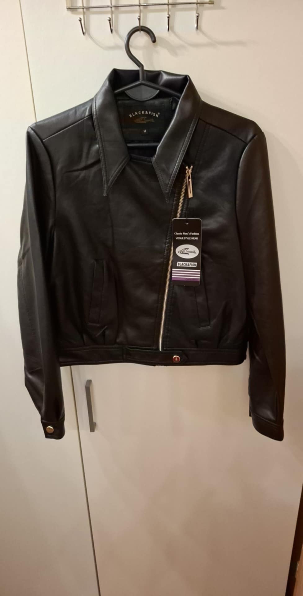 Kurtka skajka/ ramoneska , zapinana na zamek , rękawy zapinane na napy , kieszenie , kurtka na dole zapinana na 1 napę . Rozmiar biust do 100 cm , długość 53 cm