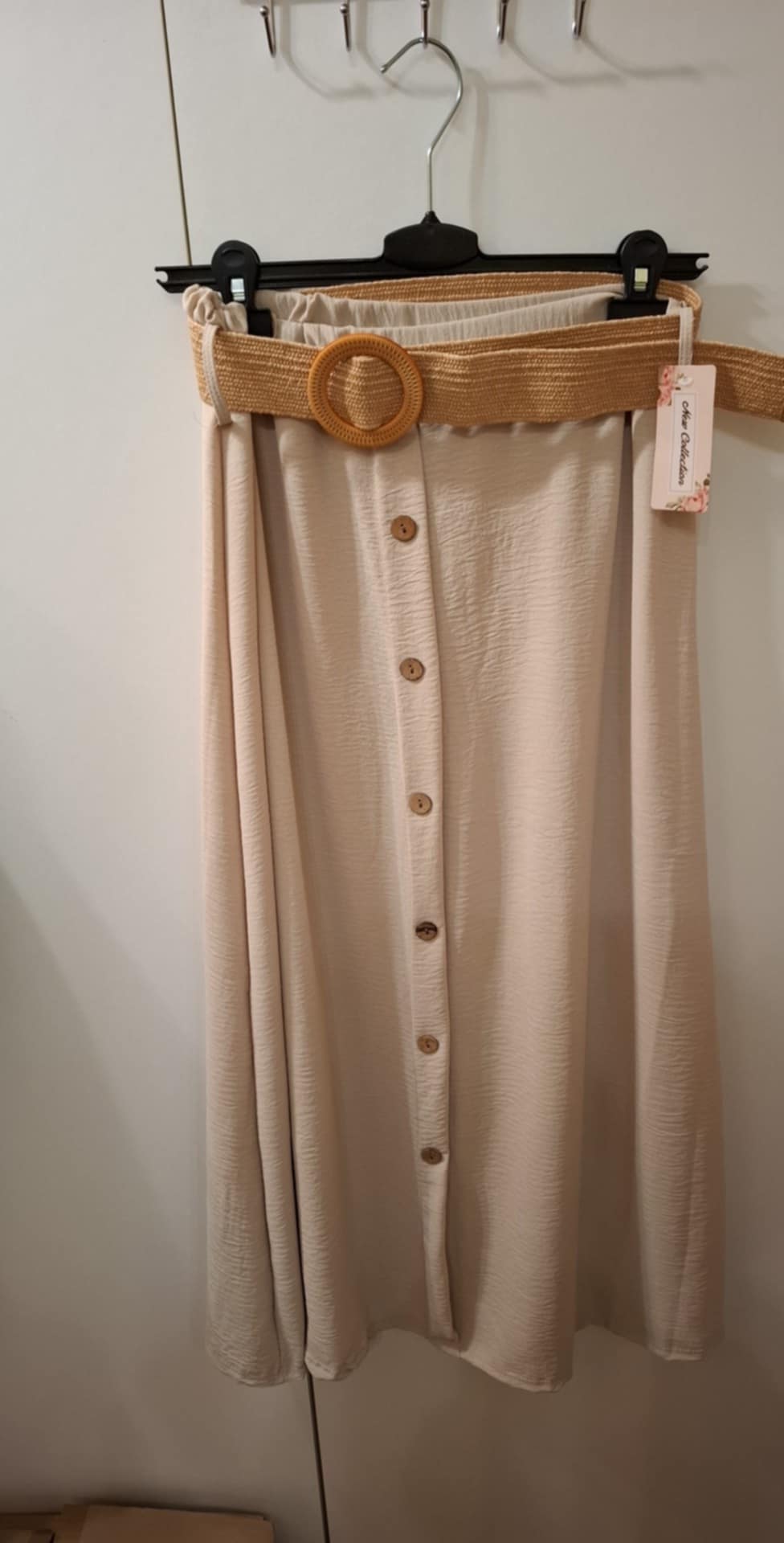 Spódnica , ozdobne guziki , pasek w komplecie , 95% wiskoza, 5% elastan,                                                            Rozmiar : Talia 74-100 cm , długość  92 cm , Kolekcja włoska.
