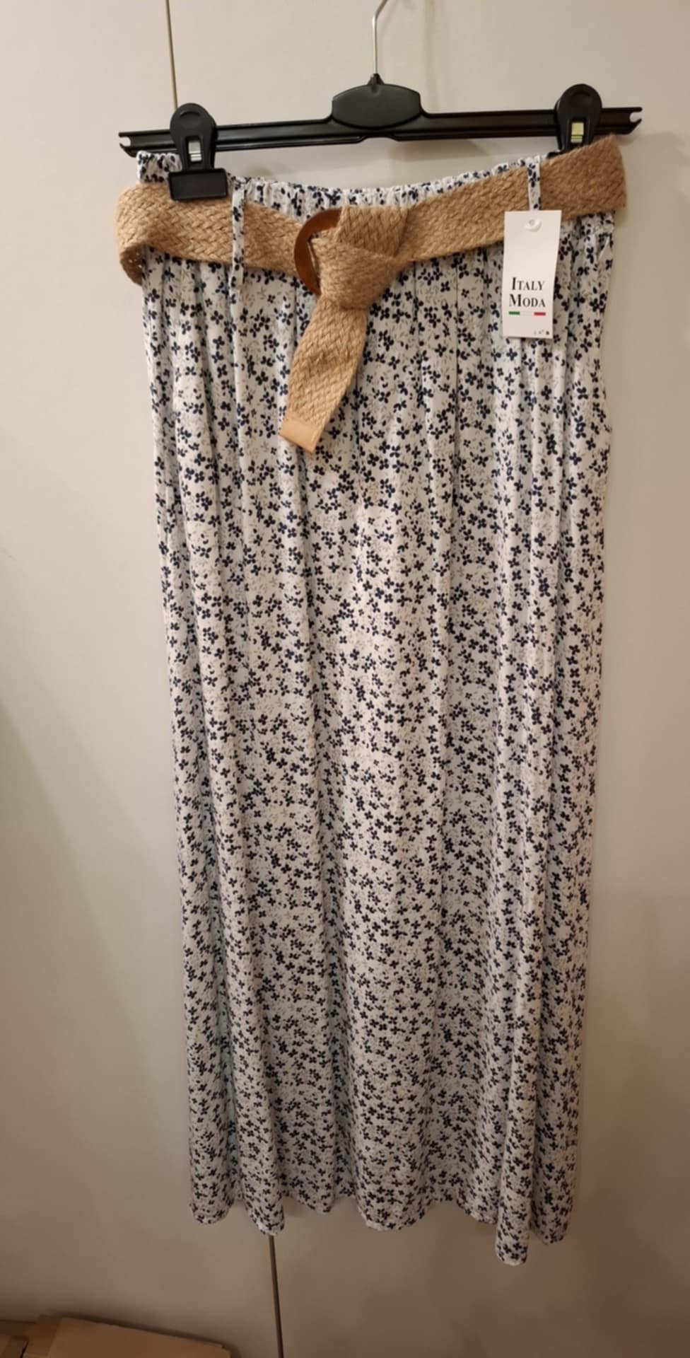 Spódnica biała w granatowe kwiaty z paskiem w komplecie , talia 66-90 cm, długość 95 cm , Włochy