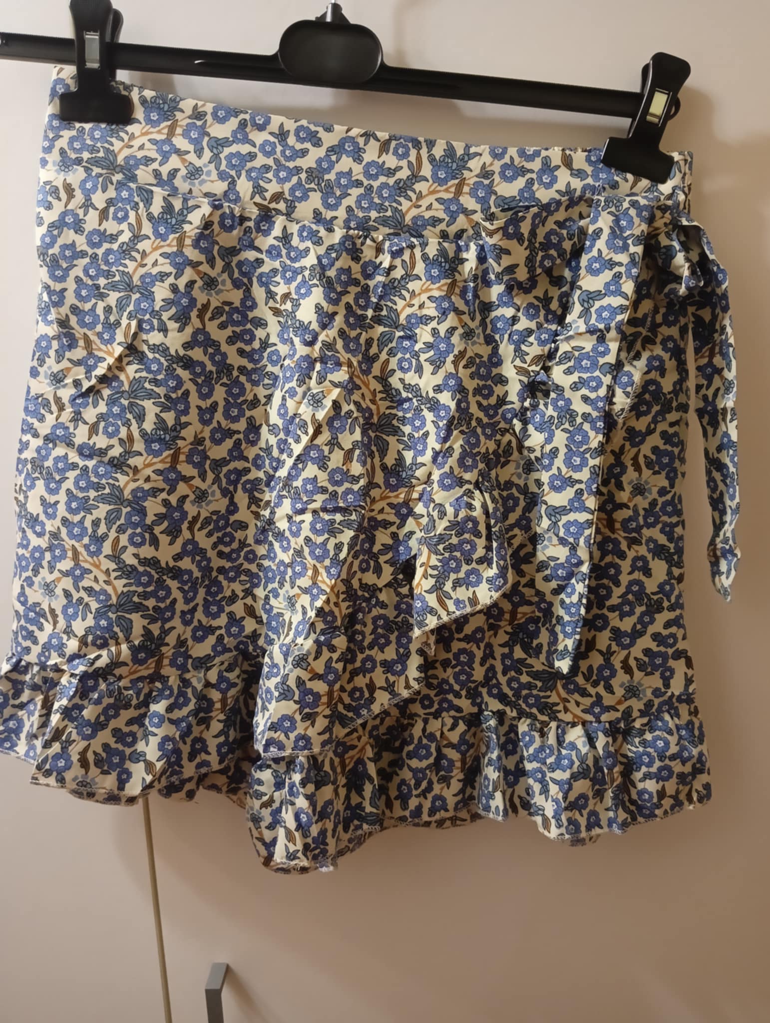 Spódnico-spodenki w kwiatuszki z falbanką ,poliester . Rozmiar L/XL – pas 74-98 cm, biodra do 124 cm , długość 40-45 cm .