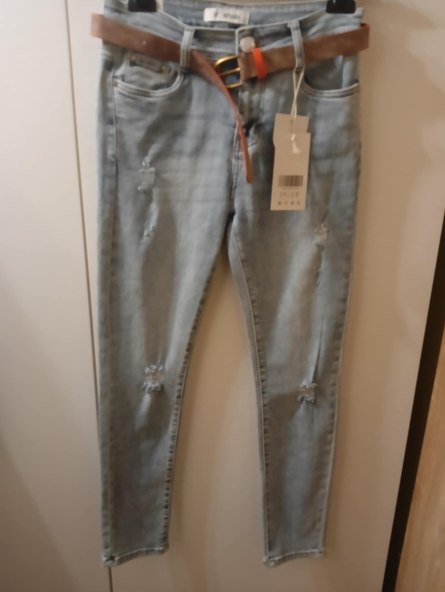 Kolor jasny jeans, pasek w komplecie , rozmiar L (pas 78-90, biodra 102-118, dł.106 cm )