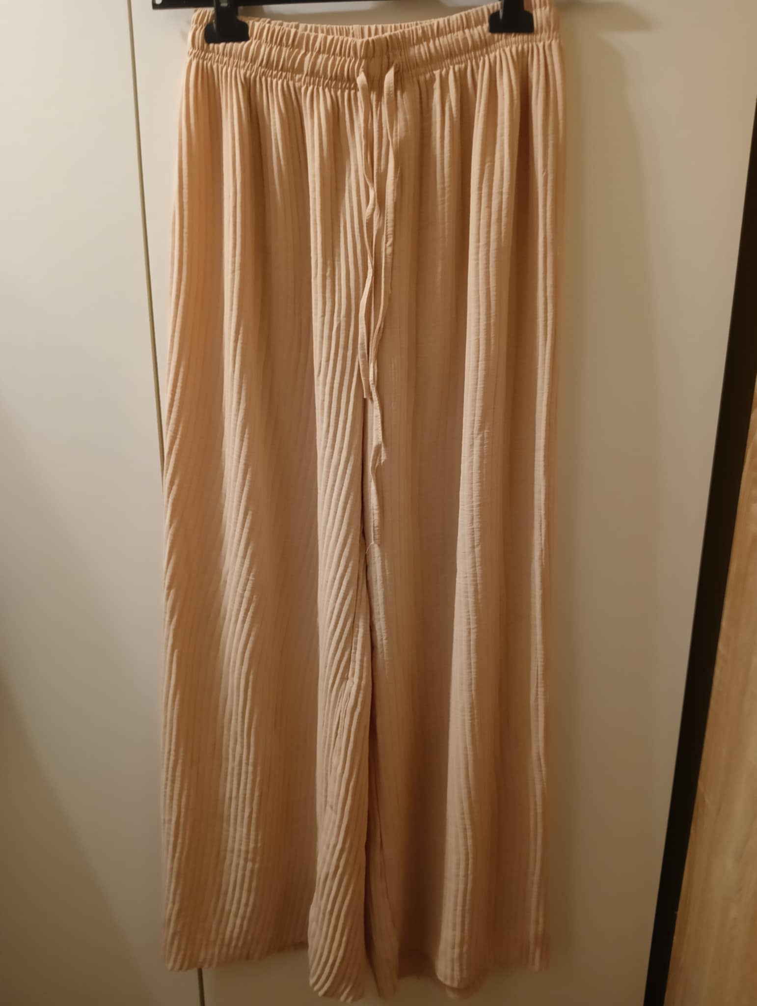 Spodnie plisowane ( wyglądają jak spódnica) 85% poliamid i 15% elastan . Rozmiar uniwersalny ( S-2XL) pas-72-102 cm , biodra do 120 cm , długość 106 cm .