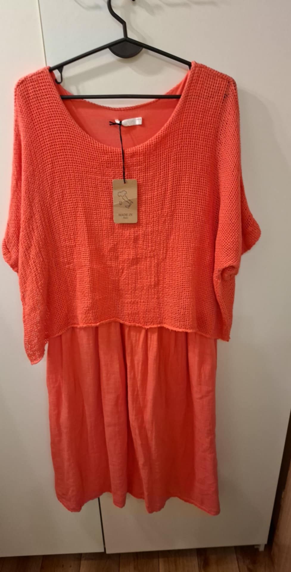 Sukienka w komplecie z narzutką , Suknia na ramiączkach ,na halce , narzutka siateczka , 100% bawełna . Tylko kolor Morela , biust 100-110 cm , długość 117 cm