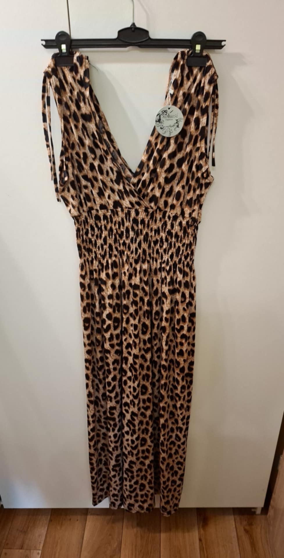 Suknia długa panterka , regulowana troczkiem szerokość ramion , w pasie szeroka guma , 65% wiskoza, 35%poliester , Rozmiar M/L