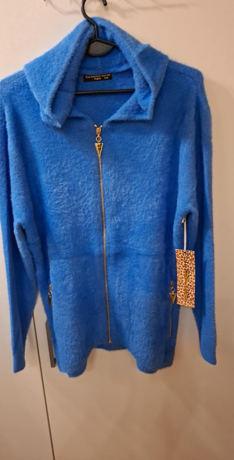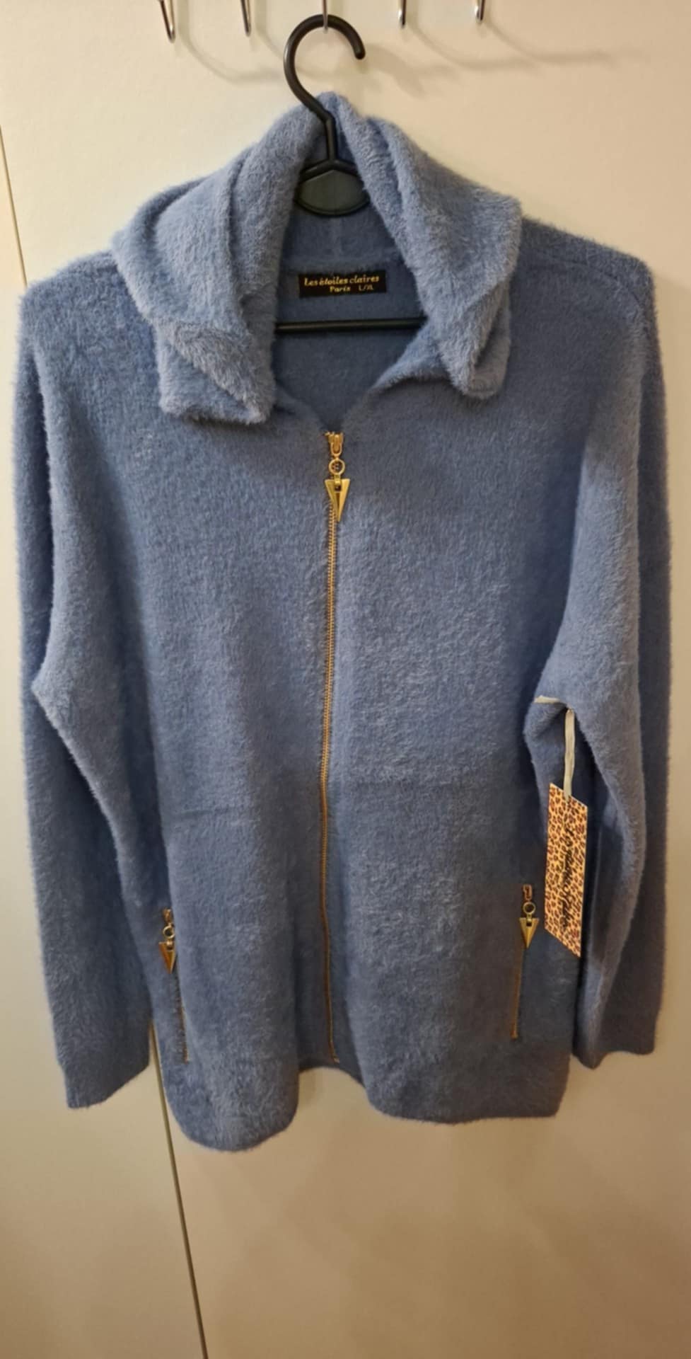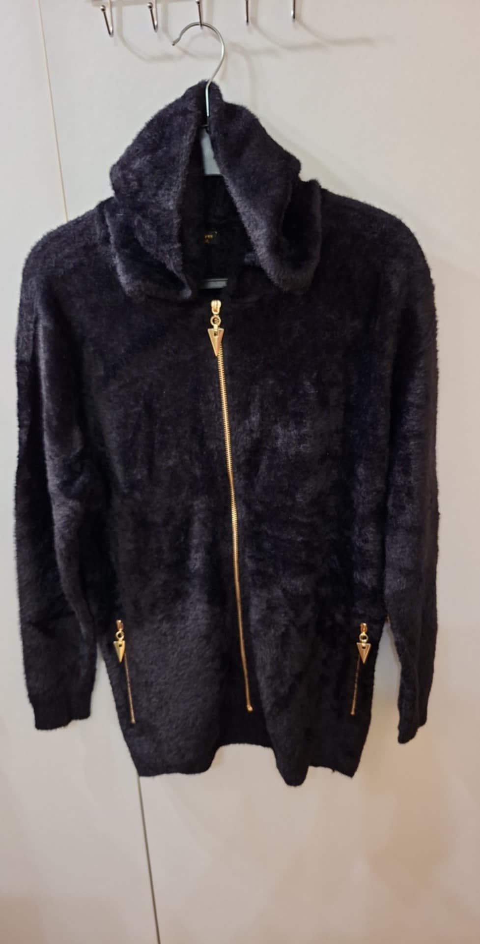 Sweterek dłuższy alpakowy ( 3 warstwowy) z kapturem . Rozpinany po całości na zamek , ściągacz na rękawie i na dole sweterka , zameczki tylko imitujące kieszenie. Bardzo mięciutki i delikatny 50% wiskoza, 40% modal i 10% nylon .