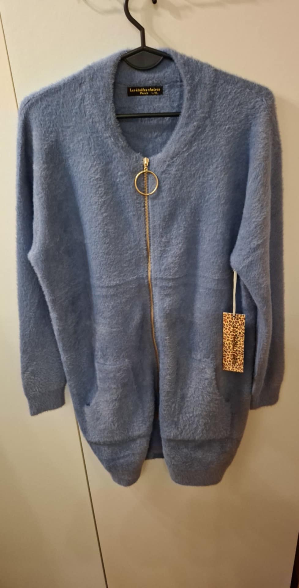Sweterek alpakowy ( 3 warstwowy) ,zapinany na zamek zakończony złotym kółkiem, ściągacz na rękawach i na dole , dwie kieszenie , niesamowicie ciepły, prosty, gładki .50% wiskoza, 40% modal, 10% nylon .