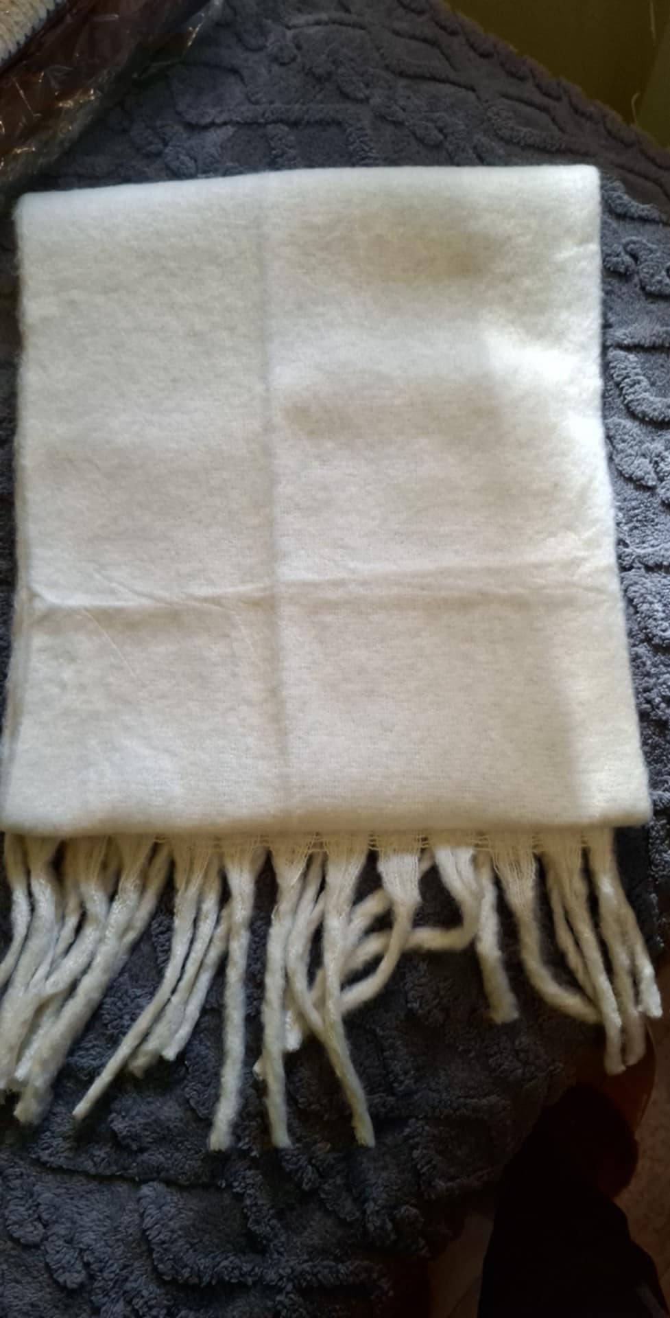 Szal 90% akyl, 10% wiskoza . Szerokość 40 cm , długość 200 cm , zakończony frędzlami.