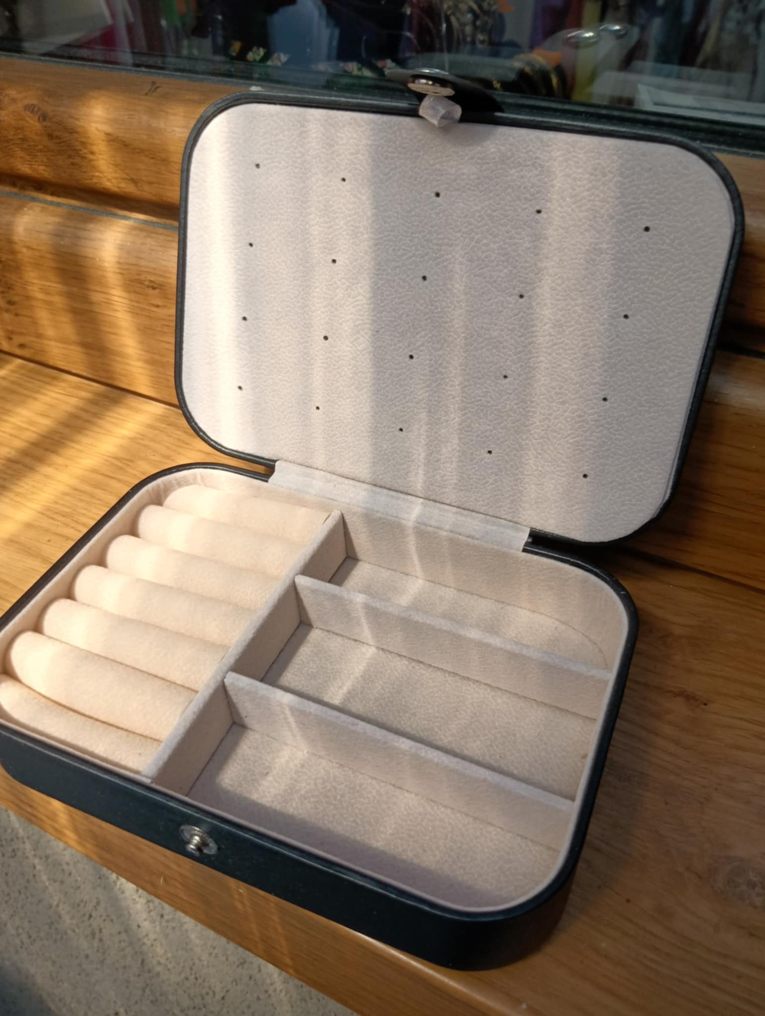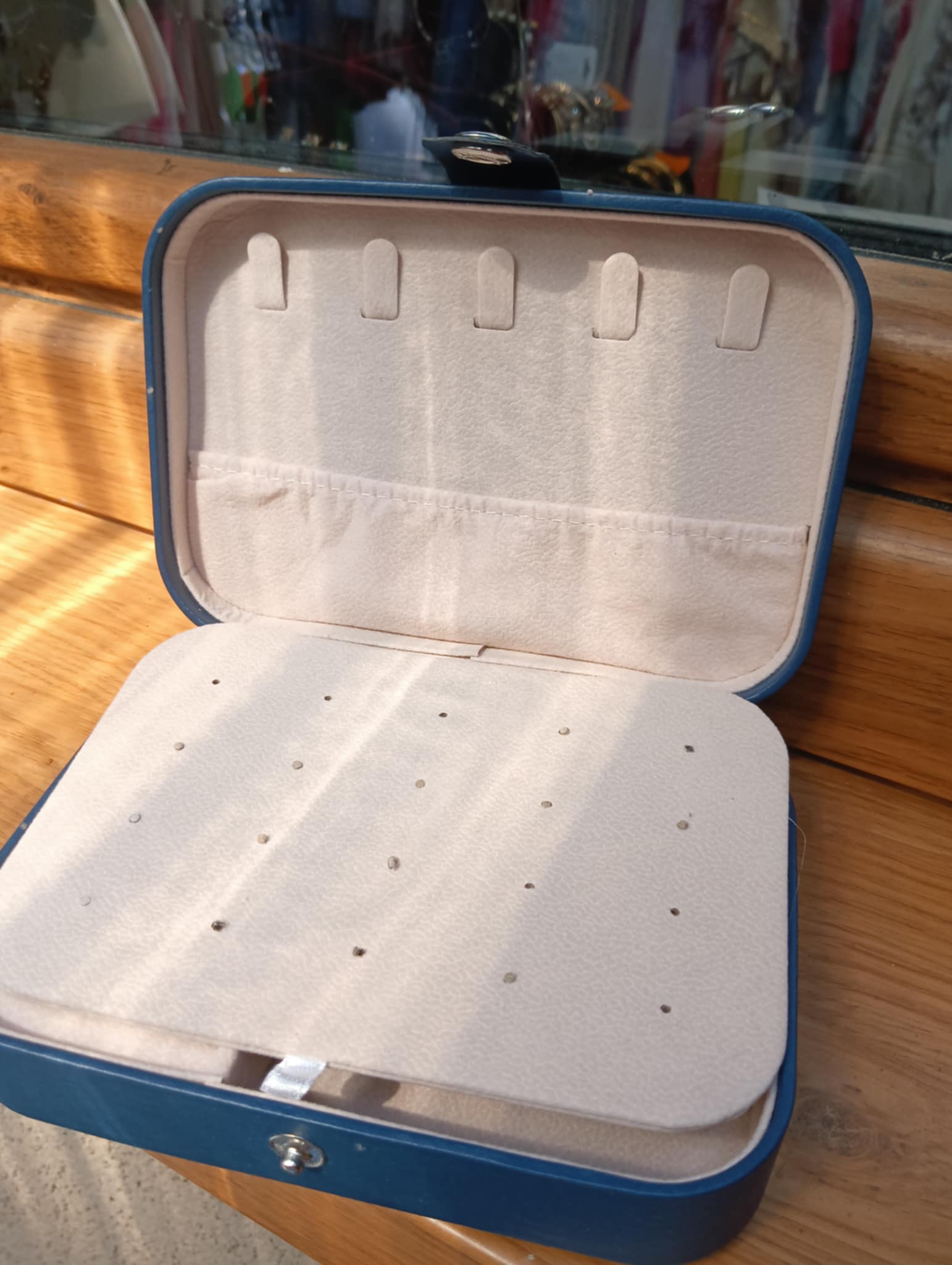 Wykonana z najwyższej jakości materiałów , zachwyca delikatną formą i starannością wykończenia . Pokryta eko-skórą . Prezentuje się niezwykle szykownie jednocześnie chroniąc przed uszkodzeniami. Posiada 2 funkcjonalne przegródki oraz specjalne miejsca na pierścionki i na kolczyki . Długość 16 cm, szerokość 11 cm i wysokość 4,5 cm . Całość zapinana na klips.